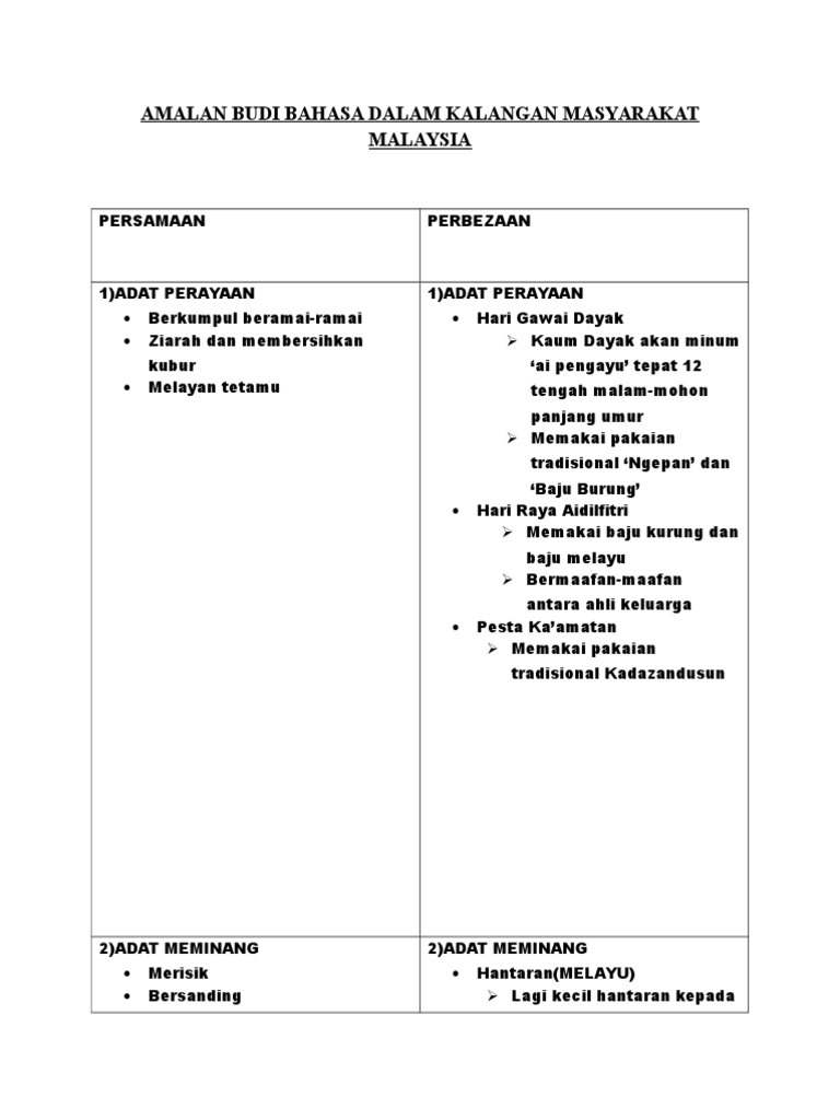 Amalan Budi Bahasa Dalam Kalangan Masyarakat Malaysia Download Docx