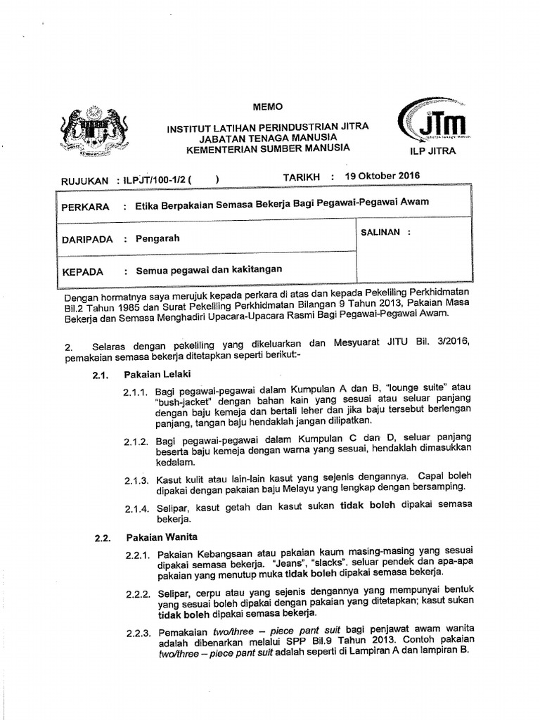Surat Pekeliling Perkhidmatan Mara Bil 14 2007 Peraturan Pakaian Dan Pemakaian Ke Pejabat Dan Semasa Menghadiri Majlis Rasmi Mara Pdf Download Gratis